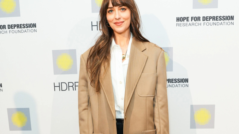 Avistada: Dakota luciendo elegante en un almuerzo glamoroso en el hotel The Plaza en la prestigiosa Quinta Avenida de Nueva York. Su atuendo sugería: elegante entusiasta de los caballos, quizás con un patrimonio neto sustancial. El conjunto incluía piezas de Gucci, como una camisa blanca elegantemente metida en pantalones de cuero negro de talle alto, una chaqueta de lana marrón de un solo botón y un bolso de hombro con cadena Horsebit de cuero negro, actualmente la bolsa de moda del momento. Dakota completó su look con botines de cuero negro de Christian Louboutin, así como piezas de joyería dorada de Monica Vinader y Tiffany & Co.