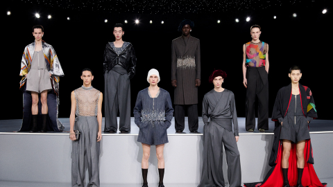 Explorando contrastes, la colección reimagina la sastrería de Saint Laurent para el hombre moderno, con énfasis en volúmenes, aberturas, pliegues y escotes. Accediendo a los archivos de Dior, la colección refleja la extravagancia de Nureyev en el escenario y su pasión privada por coleccionar textiles antiguos, evidente en los kimonos con técnicas japonesas ancestrales. La presentación inmersiva, dirigida por Baillie Walsh y con música de Max Richter, se erige como un tributo a la elegancia del ballet entrelazada con la moda masculina moderna.