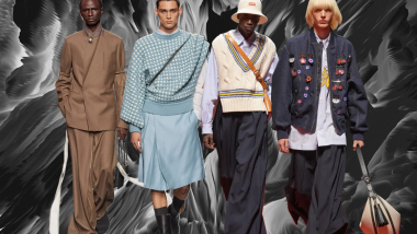 Comenzando con Dior, vemos una colección con varios tonos dentro de la gama cromática del marrón/tierra, mezclados con diferentes tonos de azul y unos toques de amarillo. Este desfile tiene un aire que nos recuerda a un estilo un tanto pesquero por los gorros, chaquetas parecidas a chubasqueros y unas botas de agua en todos los looks. También nos encontramos con chalecos y chaquetas de punto, bermudas XXL y muchas faldas.