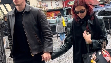 Mientras tanto, Turner lucía elegante en tonos neutros. El actor llevaba un polo de cuello azul marino sobre una camiseta blanca, con una chaqueta de cuero marrón desgastado, vaqueros negros y botas negras. Clásico, atemporal y muy francés.