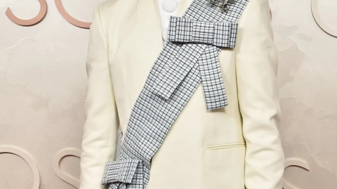 La pieza más llamativa fue una banda de cuadros en blanco y negro, probablemente de la colección Primavera 2025 de Xander Zhou, que adornaba su cintura. Este toque coquetón, con pequeños lazos, añadió una sensación moderna y juvenil. Para completar el atuendo, un broche dorado dio un aire de realeza, lo que hizo que el conjunto estuviera perfectamente acorde con el personaje que interpreta en la serie.