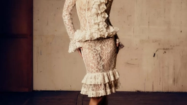 La colección apuesta por un romanticismo refinado, con bordados, encajes y cortes que evocan delicadeza y sofisticación. Las transparencias se reinterpretan con una mirada más sutil: sedas marfil fluidas, terciopelos púrpura y detalles de cuero estructuran una feminidad elegante, menos provocadora pero igual de intensa. Las siluetas, ceñidas y de inspiración corsetera, conviven con trajes de sastrería que aportan equilibrio y poder visual.