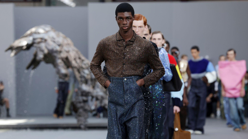 Inspirado pero a contracorriente de otras casas de lujo, Jonathan Anderson es uno de los maestros en su arte. Nada se parece a Loewe y nadie se le acerca a Loewe. El hombre dibujado por Jonathan Anderson reúne todos los ingredientes que, en los últimos años, han hecho el éxito de la marca madrileña fundada en 1846. El diseñador británico ha creado una variedad de vestuario que reúne las principales tendencias del momento: conjuntos coloridos con camisas de cuello de pastelero y pantalones de talle alto con lentejuelas, así como los materiales más populares en los últimos años (como el ante o el cuero). Enfoquémonos en los 5 detalles más sorprendentes de esta colección de primavera-verano 2024.