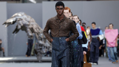 Si algo es seguro, es que Jonathan Anderson sabe cómo reinventarse. De una colección a otra, el guardarropa de Loewe se asemeja sin ser igual. El director artístico de la casa de moda española, quien presentó su última colección masculina de primavera-verano 2024 en la arena ecuestre de La Garde Républicaine en el cuarto distrito de París, atrajo una vez más a las multitudes en el penúltimo día de la Fashion Week de París. Navegando entre las obras escultóricas de la artista Lynda Benglis, los invitados tomaron asiento poco antes del mediodía en la gran cuadra de la arena ecuestre, transformada para la ocasión en una inmensa pasarela.