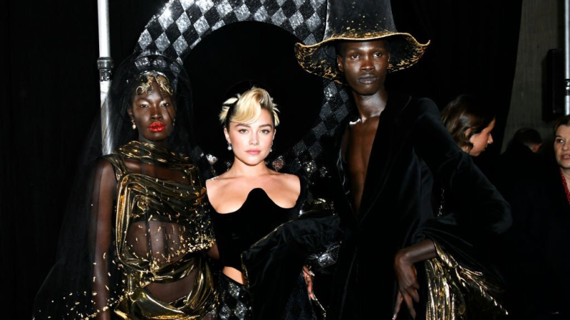 «La ropa tiene un poder transformador, ya sea para un actor o simplemente para un intérprete en el escenario de la vida, el arte de vestirnos nos permite expresar quiénes somos realmente, creando un espacio seguro para habitar en un mundo a veces crítico», dijo mientras caminando por la pista iluminada. Trayendo drama a la capital, la recién nombrada directora creativa de Nina Ricci se inspiró en «As You Like It» de William Shakespeare con Pugh terminando su monólogo, diciendo: «Nuestro vestuario puede cambiar quiénes queremos que nos vean y quiénes somos destinados a ser. Te invito a abrazar el lamé y las lentejuelas de la vida, porque todo el mundo es un escenario».