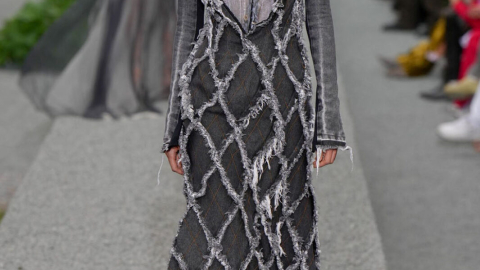En otros lugares, las prendas se combinaron con botas extragrandes hasta los muslos, mientras que la tendencia de las camisetas sin mangas blancas continuó con correas invisibles para los hombros. Otros destacados incluyen faldas de mezclilla de cintura baja y largo largo de los años 2000 que regresan, junto con aretes de dedo medio que se convertirán en el accesorio de moda de la próxima temporada.