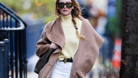La premisa de este estilo de vestir, liderado por marcas minimalistas de gran potencia como The Row, Totême y Phoebe Philo, es que una vez que encuentras tus prendas básicas, están tan bien elaboradas que las usarás durante décadas. El abrigo camel de Lawrence, por ejemplo, es un clásico de lana y cachemir de Totême que ha llevado de manera consistente desde 2019. Con una silueta amplia, solapas suavemente drapeadas, hombros caídos y aberturas en las costuras, puede ser arrojado sobre varias capas y ondea elegantemente en el viento de manera muy chic (como muestran estas últimas fotografías de Jennifer Lawrence).