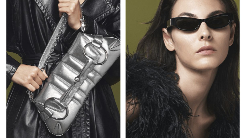 Uno de los protagonistas de la campaña es el bolso Gucci Horsebit Chain, que se recupera del archivo de la marca. Este accesorio se presentó por primera vez en la colección de otoño/invierno 2003 de Tom Ford para Gucci, y se caracteriza por su forma geométrica y su herraje Horsebit, un símbolo de la casa desde 1953. El bolso se ofrece en diferentes acabados, desde el plateado brillante hasta el pelo amarillo.