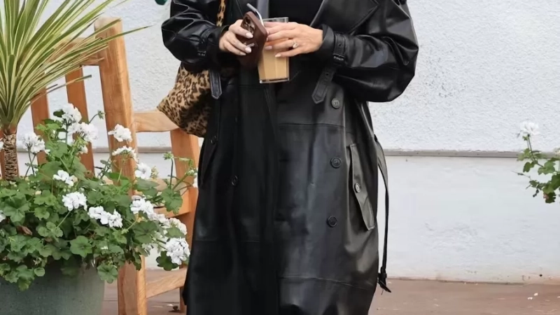 Pero las bailarinas no fueron el único detalle que desafiaba las normas del atuendo deportivo. La modelo combinó sus zapatos con un elegante abrigo negro de Saint Laurent y un bolso de estampado animal, mostrando su capacidad para fusionar lo chic con lo casual incluso en un ambiente de ejercicio.