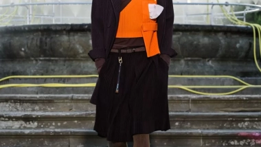 Innovaciones destacadas incluyeron trenchcoats translúcidos y cardigans en tonos sorbete, además de conjuntos tipo pijama que imitaban el plisado tradicional. El cierre del desfile fue un guiño al diseño práctico: prendas exteriores convertibles en bolsas con perchas integradas.