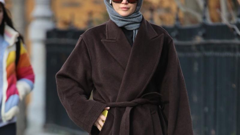 Lawrence se abrigó con un abrigo de color marrón chocolate, el cual ajustó a la cintura. También se protegió con lo que mi colega del otro lado del charco llamó un «look anti-paparazzi». Para el escudo de esta semana contra los paparazzi, la actriz optó por gafas de sol extragrandes (en este caso, de carey cuadradas con lentes sepia de Bottega Veneta), y una bufanda gris oscuro que le cubría la cabeza.