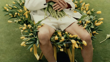 La campaña, que se despliega en un campo de golf, presenta a Gries luciendo prendas con estampados de banana: desde bóxers y pantalones cómodos hasta trajes elegantes. En una de las fotos, posa junto a un coche amarillo plátano; en otra, conduce un carrito cargado de frutas tropicales. Incluso aparece sentado en una carretilla de tulipanes, sosteniendo un cartel que declara: “I LOVE BANANAS”.
