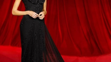 La actriz desfiló por la alfombra roja con un vestido que no podía mezclar mejor el mundo del cine y de la moda. Gerber optó por llevar un vestido de la colección de alta costura otoño 1997 de Alexander McQueen para Givenchy. El vestido era la versión en negro del popular vestido que Audrey Hepburn llevó en ‘My Fair Lady‘, un vestido largo con algo de cola y que, en la parte de arriba, estaban decorado con joyería que colgaba de las mangas. Al igual que muchas otras celebridades que optaron por una inspiración Old Hollywood, la modelo remató su look con un recogido romántico con tirabuzones y un maquillaje sencillo, pero femenino. En cuanto a los accesorios, Kaia Gerber optó por una gargantilla plateada sencilla, pero con personalidad y unos pendientes plateados de joya que daban un toque aún más glamuroso al evento.