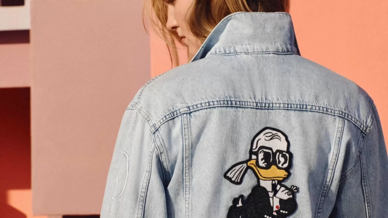 La colección cápsula Karl Lagerfeld x Pato Donald 2025 incluye chaquetas, suéteres, blazers y accesorios exclusivos como mochilas, zapatillas y gafas de sol. Todos los diseños muestran al Pato Donald con un look inspirado en Lagerfeld: gafas oscuras, camisa de cuello alto y blazer negro, acompañados de detalles únicos que reflejan la elegancia del diseñador alemán.