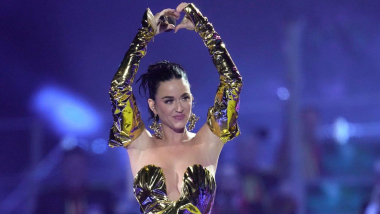 Después de hacer una aparición viral en la Abadía de Westminster con un traje lila a medida, combinado con guantes hasta el codo y perlas de tamaño gigante el 6 de mayo, Perry se sumergió en el ambiente dorado de las celebraciones de la coronación con un vestido personalizado de Vivienne Westwood durante su actuación en el Concierto de Coronación. La silueta acorsetada del siglo XVIII, hecha de cuero metalizado dorado, fue diseñada para «desprender grandiosidad barroca», según la marca. Específicamente, el drapeado está inspirado en un look nupcial de la colección Gold Label de la casa británica en la primavera de 2006.