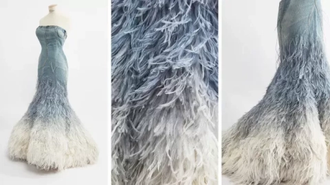 Entre los lotes más destacados figura una falda de tartán inspirada en el kilt escocés, bordada con miles de diminutas cuentas de vidrio por Maison Lesage. Con un peso de 10 kilogramos, esta obra maestra promete alcanzar entre 12,000 y 15,000 euros. Otro tesoro es un vestido de mezclilla que se transforma en una espectacular falda de sirena adornada con plumas de avestruz, valorado entre 25,000 y 35,000 euros.