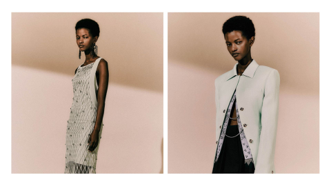 LANVIN desentierra su historia de 133 años, fusionando siluetas de archivo con un toque moderno. El viaje en el tiempo lleva la marca a los glamurosos años 20, donde los códigos clásicos de LANVIN se reinventan en vestidos con adornos de tul, corazones perforados en prendas cortas y pantalones holgados plisados.