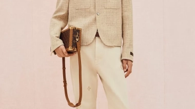 La colección pone especial atención en el outerwear, con blusones técnicos en Prince of Wales Monogram y chaquetas Monogram Surplus pensadas para resistir cualquier entorno. La parte más veraniega apuesta por trajes de lino relajados, boxer shorts, loungewear y piezas en seda jacquard a rayas que aportan una ligereza sofisticada. Los accesorios amplían el universo creativo: un Keepall con fundas desmontables para raquetas de tenis, bolsos cruzados inspirados en palas de ping-pong y divertidas bolsas tipo cartón de leche en Classic Monogram. El calzado oscila entre la contundencia del LV Tilted sneaker en patchwork denim y la delicadeza del LV Soft sneaker, completando una propuesta que combina funcionalidad y diseño con una naturalidad impecable.
