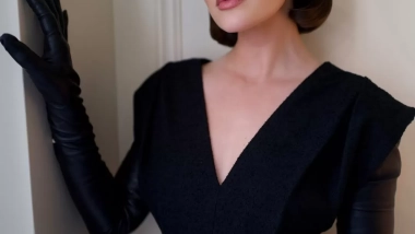 “Estos guantes son increíbles. Creo que están pensados para alguien con brazos más largos, pero hemos logrado que encajen”, comentó entre risas. Hale también destacó el sutil detalle de una abeja en el botón de la prenda y añadió: “Me encanta el toque de las perlas, es una combinación entre lo sofisticado y lo atrevido, pero sin perder la feminidad.”