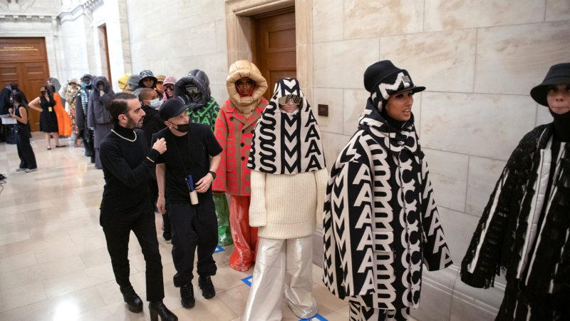 La presentación fuera de calendario de la colección de Jacobs, disponible exclusivamente en Bergdorf Goodmen, fue un deleite para todos los asistentes. Coincidió con un concierto de Tears for Fears cerca del Madison Square Garden, lo cual permitió que aquellos con dobles planes para la noche pudieran disfrutar tanto del desfile como del concierto sin problemas. No obstante, el ritmo acelerado del desfile tomó por sorpresa a algunos invitados, entre ellos Anna Sui, Nicky Hilton, Inez Lamsweerde y Vinoodh Matadin.