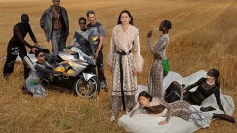 La narrativa de la campaña presenta a nuevas ‘tribus’ envueltas en el icónico estampado de luna creciente de la diseñadora, acompañadas de banderas hechas de pañuelos de seda que representan naciones utópicas. Las escenas capturan ceremonias místicas, comidas comunitarias y refugios improvisados en vehículos abandonados, revelando una visión renovada de la comunidad de Marine Serre.