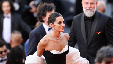 El vestido de la influencer es, sin duda alguna, una obra de arte, pero también conforma parte de la artesanía española gracias al Grupo Pronovias. Un majestuoso diseño largo confeccionado en crepé bicolor con corsé de escote corazón. Además, ha destacado por su falda lápiz con una abertura que declara su estética sexi-chic tan reconocible en su caminata. Un vestido minimalista que ha querido rematar con una capa de más de 4 metros de largo que ha aportado una sensación dramática, pero con esos aires del glamour hollywoodense que tanto gusta ver en una alfombra roja.