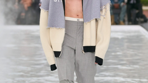 El desfile comenzó con conjuntos monocromáticos con siluetas cargo fáciles de usar, máscaras faciales y prendas de abrigo. Siguieron piezas brillantes que llegaron en forma de pantalones de moto, pantalones cortos hasta la rodilla y chándales. “Sabes, creo que todo sobre la marca se basa en la realidad. Pude ver a este tipo, cómo se ve, existiendo en la calle. Y para mí, ese es un enfoque realmente moderno de la moda”, dijo Williams. El logotipo de la casa dominaba la mayoría de los artículos, incluidas las chaquetas, las blusas, los pantalones, los bolsos y más.