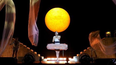 Cuando el escenario se abrió, lo hizo con una imagen que resumía todo el concepto: una caja de transporte de obra de arte en el centro, como si lo que estuviera a punto de mostrarse no fuera un show, sino una pieza a contemplar. Desde ahí emergió Rosalía, iniciando el recorrido con una puesta en escena que jugaba constantemente entre lo sagrado y lo contemporáneo.