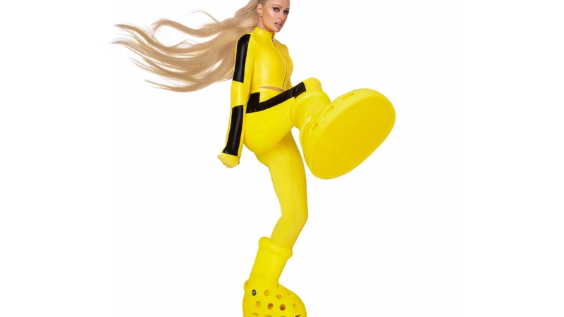 Echa un vistazo a Hilton en acción arriba, antes del lanzamiento de las MSCHF x Crocs Big Yellow Boots a través del sitio web y la aplicación de sneakers de MSCHF a las 2 pm EDT del 9 de agosto, por un precio de $450 USD.