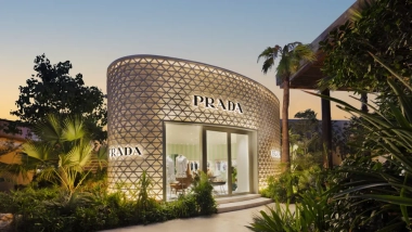 La icónica firma italiana inaugura dos boutiques frente al mar en este sofisticado club de playa. Ambos espacios destacan por su forma ovalada y fachadas decoradas con el característico patrón de triángulos de la marca.