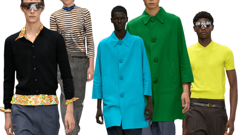 Los detalles meticulosos incluyeron chaquetas ultra cortas y abrigos trench dramatizados con cuellos alambrados, contrastando con suéteres de cuero suave y prendas de punto vibrantes con recortes triangulares. Las camisetas tributo a Bernard Buffet completaron la narrativa expresionista de la colección, junto con monos con cremallera y calzado de puntera plateada que capturaron la esencia única de Prada.