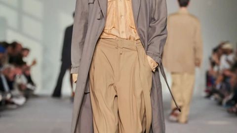 Mezclar una camisa y un abrigo de bronce con shorts de lentejuelas dorados, o combinar shorts berenjena con una chaqueta bomber mostaza, era a la vez improbable y evidentemente efectivo. El pespunte ondulado en esos shorts teñidos de berenjena y en una chaqueta de forro hacía eco de la impresión superpuesta de «cebolla» en otras prendas.
