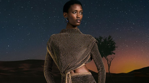 Los detalles de la colección incluyen bordes artesanales en piezas de malla metálica, fusionando la ornamentación con la comodidad diaria. Tratamientos superficiales excepcionales, como el tejido negro acanalado con detalles dorados y el encaje estampado floral, reflejan una visión global que trasciende el tiempo. Abrigos bernous a rayas se transforman en piezas clásicas, mientras que los motivos florales británicos resaltan en fondos oscuros.