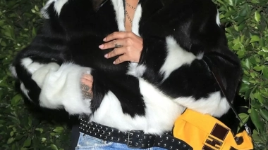 Este estampado de vaca ha resurgido en las pasarelas de marcas como Bottega Veneta y Dior, y Rihanna se une a esta tendencia con su característico toque personal. La baguette de Fendi, famosa desde los 90 y símbolo de estilo en la serie de HBO, aporta a su conjunto un guiño nostálgico y sofisticado.