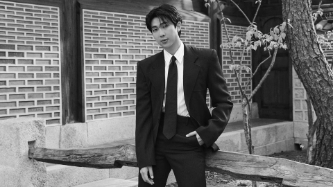 En la tercera foto, se puede ver a RM apoyado en una mesa frente a una pintura tradicional, mientras mira carismáticamente a la cámara.