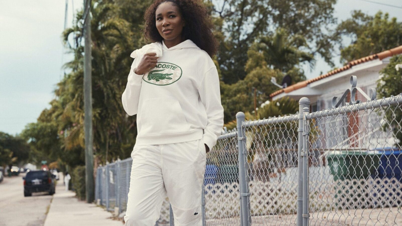 La inclusión de Williams en esta nueva campaña, como imagen de la marca, no es coincidencia, pues la historia de Lacoste, liga su nacimiento con el tenis. Así, el inicio de la firma francesa se remontan a los años 30, cuando Allan H. Muhr, capitán del equipo francés en la Copa Davis, prometió regalar a René Lacoste (respetado tenista) una maleta de piel de caimán si ganaba uno de sus partidos de tenis.