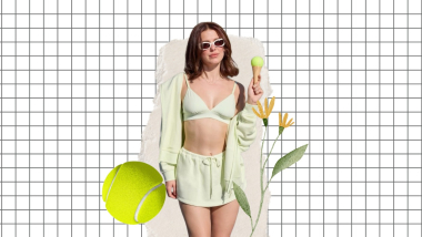 La sesión de fotos, ambientada en una cancha de tenis que evoca el glamour country club, es un manifiesto de “elevated athleisure”. En el centro, un conjunto que grita verano: el Softie Cotton Triangle Bralette y la Cozy Crush Mini Skirt. Un dúo de prendas en citrino que transmite energía y juventud. Brown completó el look con la capucha del mismo material, que dejó abierta para lucir el sujetador, y unos lentes de sol blancos rectangulares que añadían un toque de modernidad. Ella misma lo anunciaba con una frase contundente: “Now serving my newest shade… citrine”.