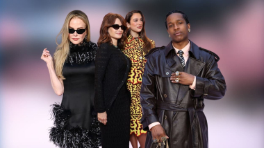 Uno de los nombres más esperados fue el de Dua Lipa, que apostó por un estilismo más atrevido, con estampados inspirados en dibujos animados y superhéroes americanos, una referencia directa a los códigos contemporáneos que Blazy ya exploró en Nueva York. Su presencia confirmó la voluntad de la firma de dialogar con una nueva generación sin perder identidad.